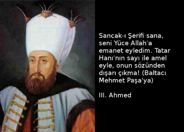 Sancak-ı Şerifi sana, seni Yüce Allah'a emanet eyledim. Tatar Hanı'nın sayı ile amel eyle, onun sözünden dışarı çıkma! (Baltacı Mehmet Paşa'ya)
