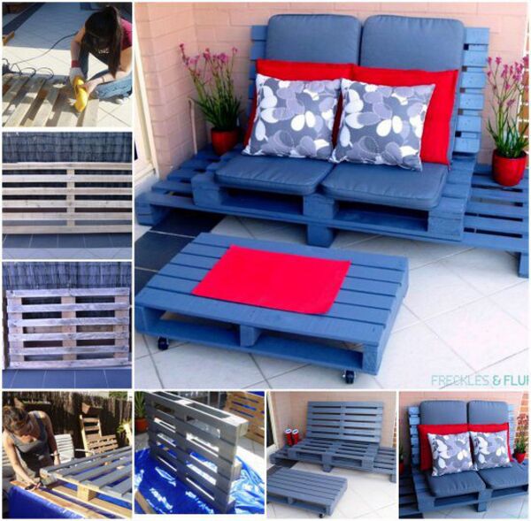 Hazır almak istemiyorum, kendim yapacağım diyorsanız işte size L koltuk takımı ve orta sehpa için palet dönüşüm örneği.
