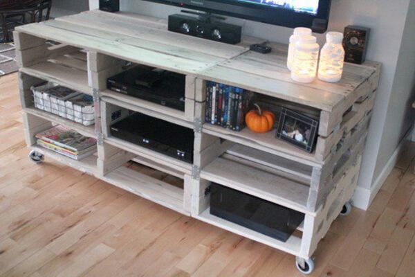 Eski paletten elde edilmiş TV ünitesi ile herkesi hayran bırakacak bir dönüşüm örneğini salonunuzda sergileyebilirsiniz.