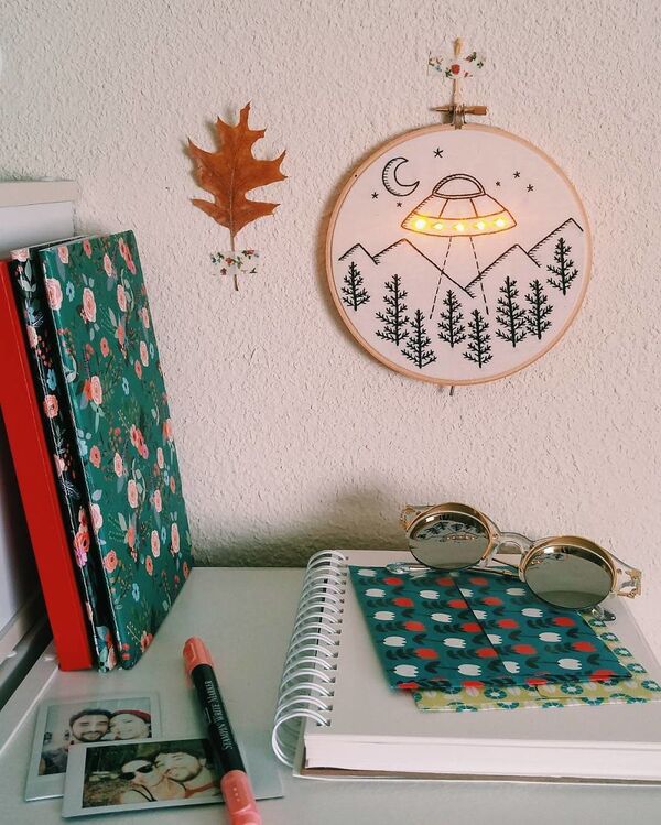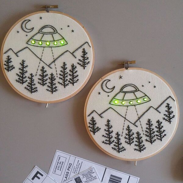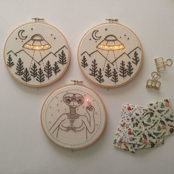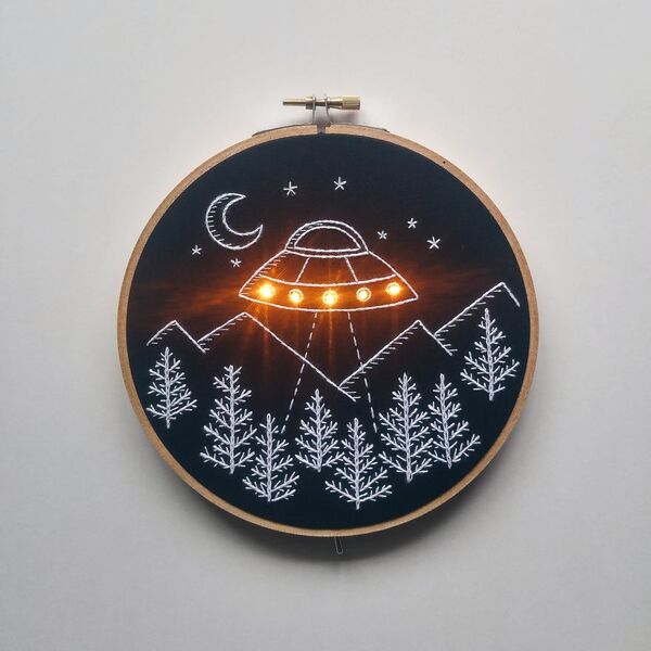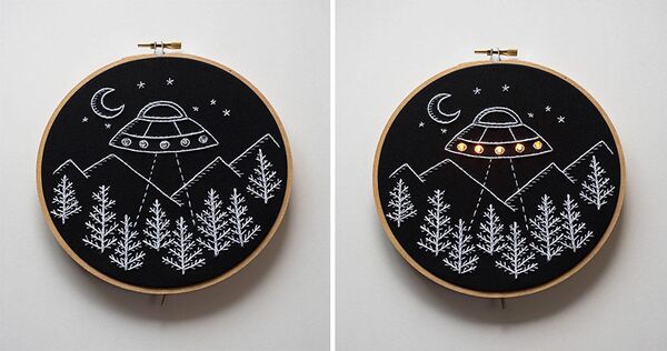 Marcon, eşinin fikri üzerine tasarladığı kanaviçelere led ışıkları ekledi ve ortaya harika sonuçlar çıktı.