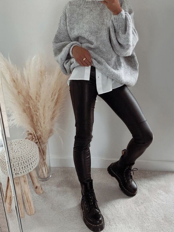Deri pantolonlar, postallarla oldukça güçlü bir duruş sergiler. Üstüne basic bir t-shirt ve biker ceket ekleyerek dikkat çekici bir stil oluşturabilirsiniz. Siyah postallar bu kombin için klasik bir tercih olacaktır.