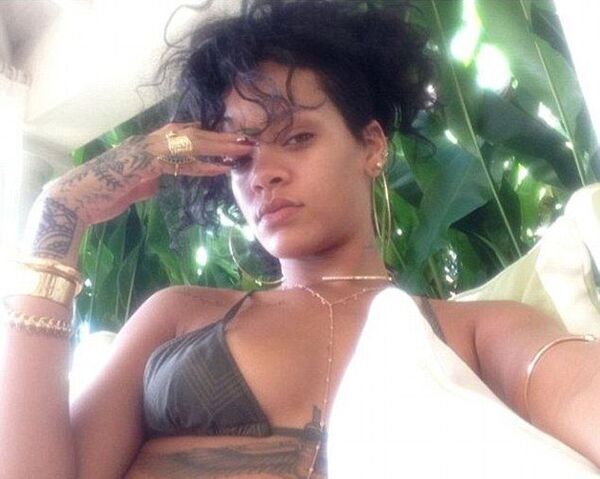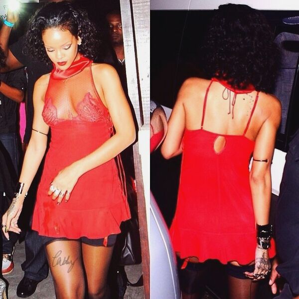 Partiye hazırlanırken çektirdiği seksi fotoğrafları sosyal medyadan paylaşan Rihanna'nın seksi kostümü büyük ilgi gördü.