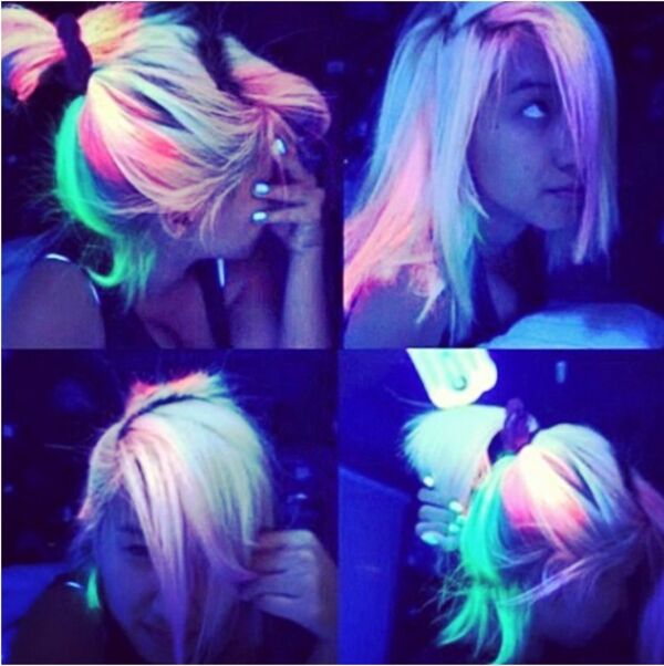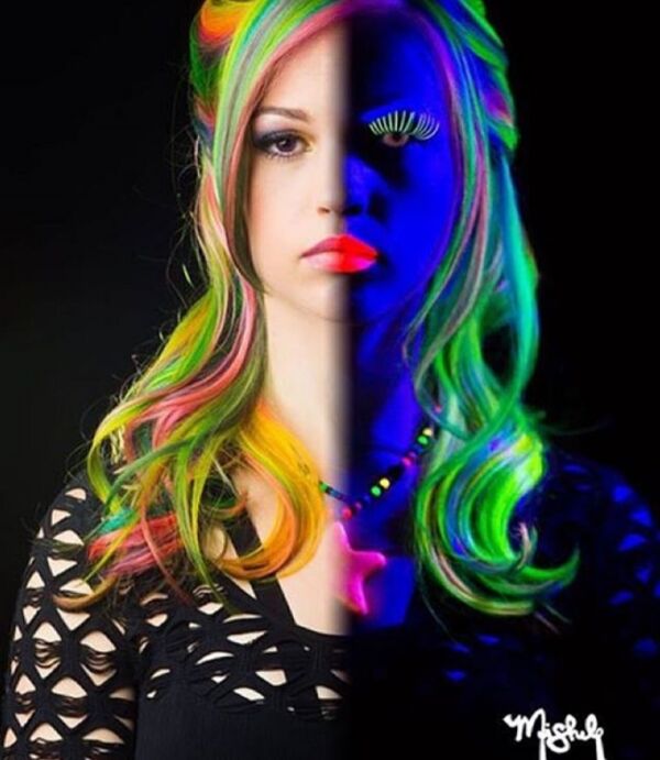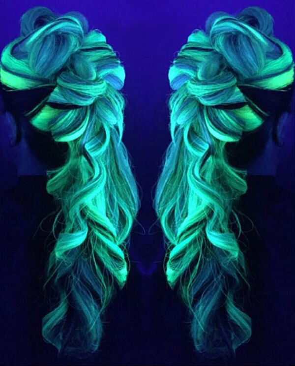 Karanlıkta parlama - floresan etkisini şimdi saçlarda göreceğiz.