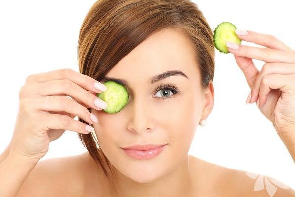 12- Birer dilim salatalığı gözünüzün üzerine koyun. Şişlikleri aldığını göreceksiniz.