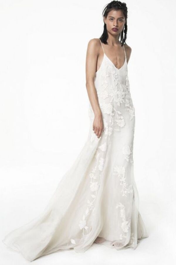 İnce askılı gelinlikler romantik düğünler için birebir.