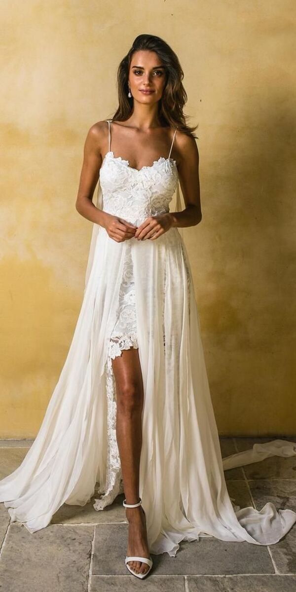 Geleneksel gelinliklerden uzaklaşarak iki parçalı elbiseler kullanabilirsiniz. Bu sayede hareket kabiliyetiniz de artacaktır.