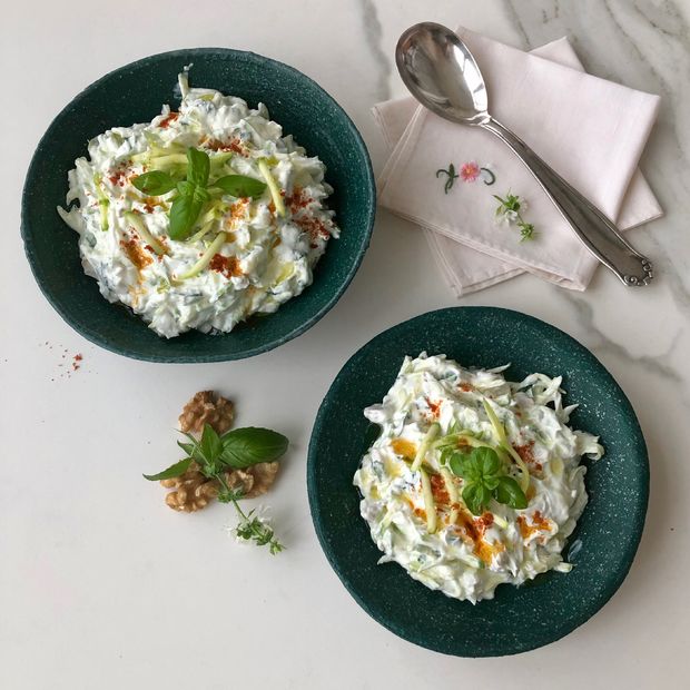 Kabakları pişirmeden kısa sürede hazırlayabileceğiniz leziz ve sağlıklı cacığı hafif bir öğün veya meze olarak tüketebilirsiniz.