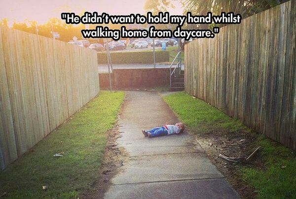 Kreşten eve dönerken babasının elini tutmak istemediği için