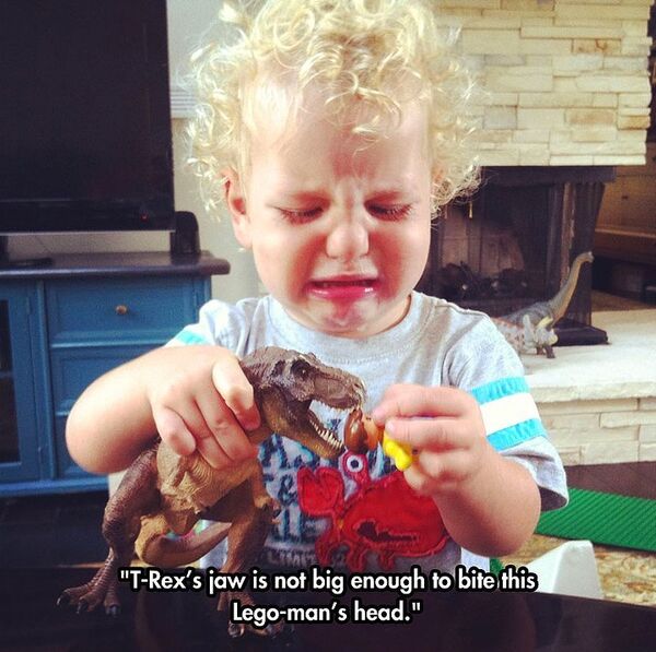 Trex'in ağzı, lego adamın kafasını ısıracak kadar büyük olmadığı için