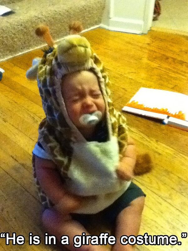 Zürafa kostümü giydiği için
