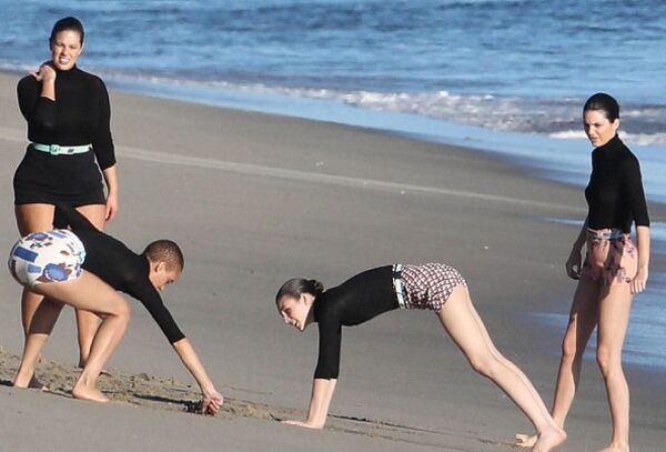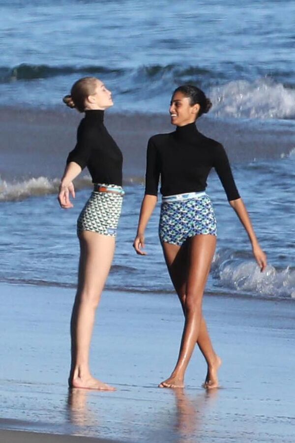 Ünlü model Ashley Graham'in de eşlik ettiği ikili çekim sırasında eğlenceli anlar yaşarken, modellerin soğuk hava nedeniyle zorlu anlar yaşadıkları görüldü.