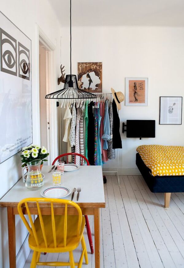 Kıyafetleriniz için kullanılmayan köşeleri mini bir dolap olarak kullanabilirsiniz.