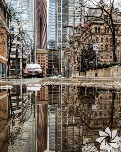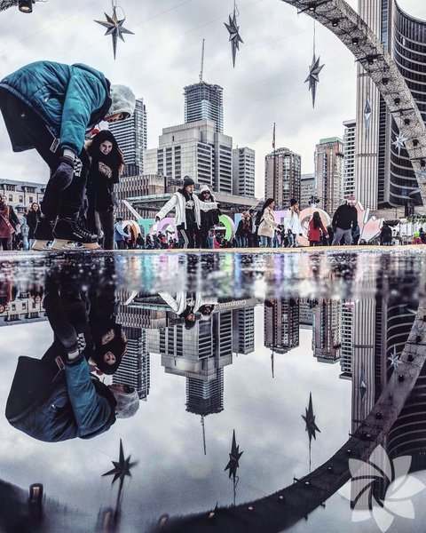 Su birikintisinden yansıyan şehirler