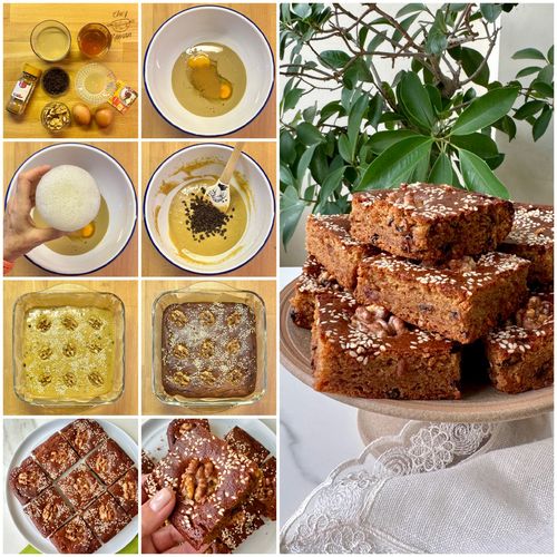 Tahinli & ballı ve cevizli leziz kekte rafine şeker ve un olmadığından glutensiz beslenenler ve şeker tüketmeyenler için de alternatif lezzet olabilir, üstelik yapılışı da çok pratik. Tahinli keke çok yakışan ekşi bir üzüm çeşiti olan zereşk kullandım, kurutulmuş üzüm veya yaban mersini gibi kuru meyvelerden dilediğinizi ekleyebilirsiniz.