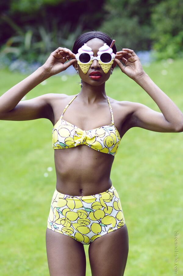 Oldukça retro bir görünüme sahip yüksek belli bikiniler plajda oldukça havalı.