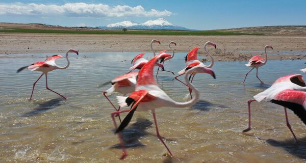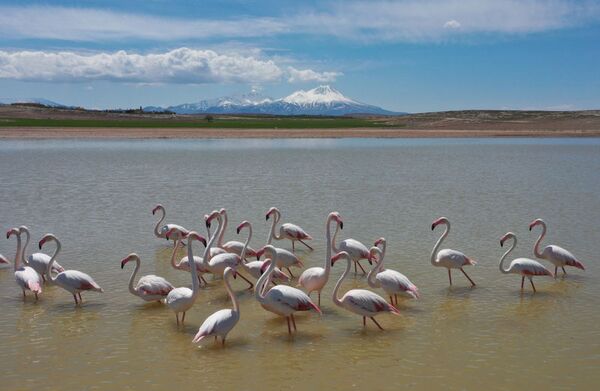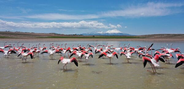 Türkiye'nin ikinci büyük gölü olan Tuz Gölü'ne göç yoluyla gelen flamingolar, Aksaray'ın Mamasın Barajı'nda mola verip, kuluçka dönemini geçirecekleri Tuz Gölü'ne uçtu.