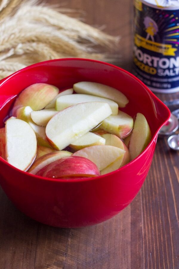 Taze meyve ve sebze dilimleri tuzlu suyla dolu bir kaseye koyarak kahverengiye dönüşmesini önleyin.