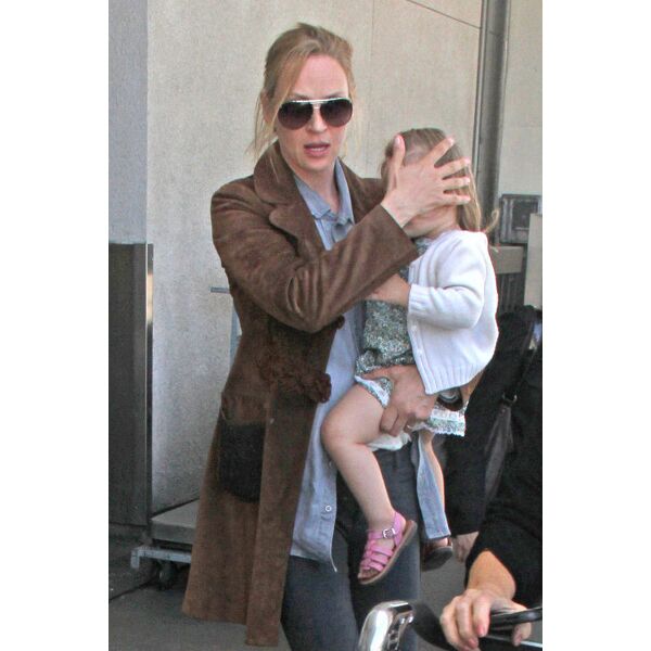 Önceki gün kızı Luna'yla birlikte Los Angeles Havalimanı'nda görüntülenen Thurman, muhabirlerin görüntü almasını engellemek için kızının yüzü eliyle kapattı.