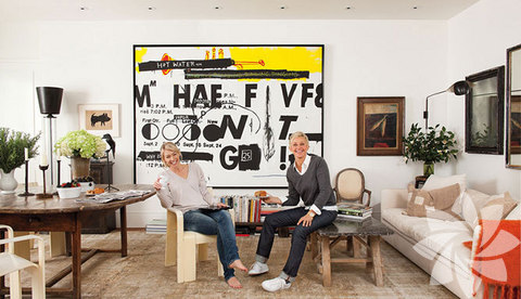 Beverly Hills'de bulunan bu evde Ellen, 2008 yılında evlendiği eşi Portia de Rossi ile paylaşıyor. Evi mobilyalı alan Degeneres ve Rossi çifti, evdeki eşyaları yerleri ile sürekli oynarak, evde her daim yenilik yaratıyorlar. Ev 880 metrekare büyüklüğünde ve iki misafir evi yer alıyor. Dekorasyonu ile evi ciddi ve stil sahibi bir hale getiren çift evin aynı zamanda yaşayan bir ev olması için dekorasyonda eşya seçimini evi kullandıkları şekle göre dizayn etmişler. Yaşayan bir ev olduğunu ise girişte karşılayan masa tenisi masasından anlayabiliyorsunuz.