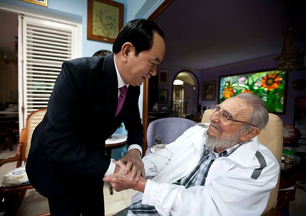Fidel Castro'nun fotoğrafı, ölmeden 10 gün önce çekildi. Kendisine, Vietnam Cumhurbaşkanı Tran Dai Quang tarafından bir portre takdim edilirken çekilen Castro, 25 Kasım'da hayata gözlerini yumdu.