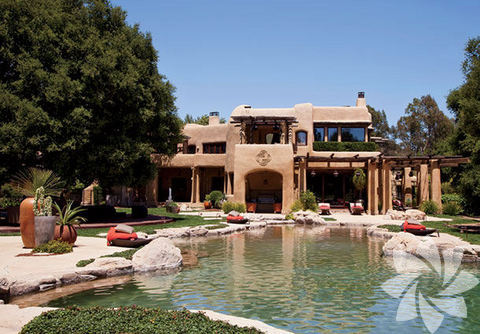 Tüm ailenin ihtiyaçlarını karşılayan evi, Stephen Samuelson adlı mimar bol açık alanın, organik materyallerin kullanıldığı, el işi detaylarını çokça kullanarak tasarlamış.