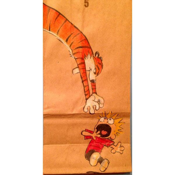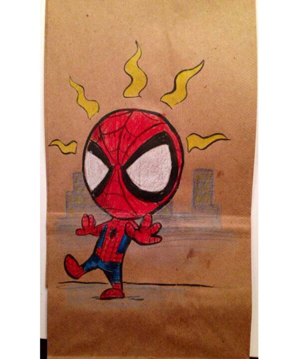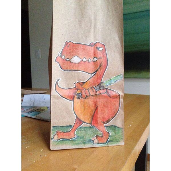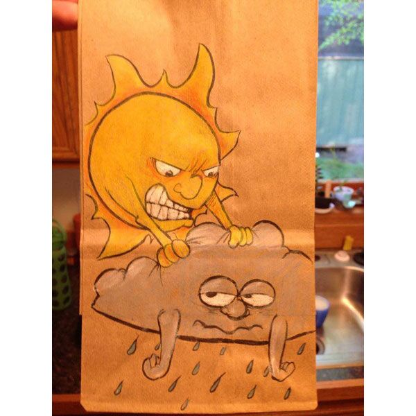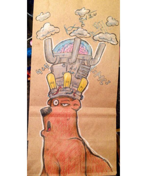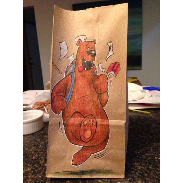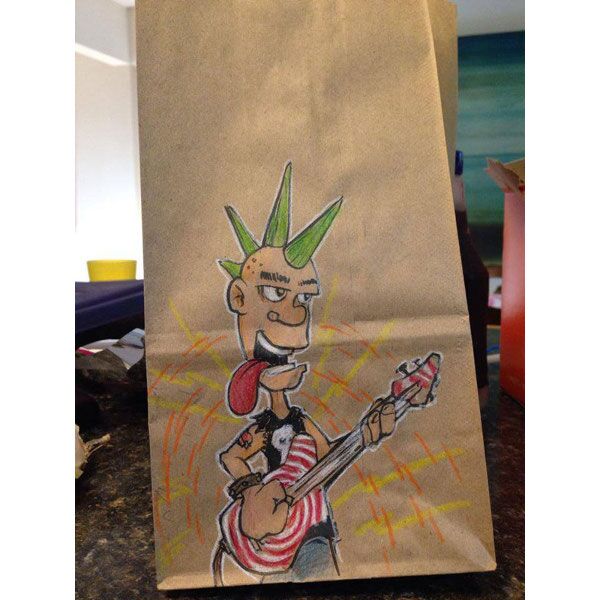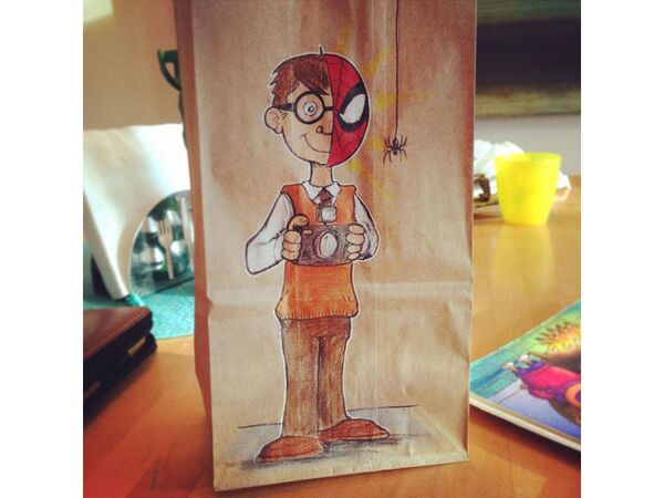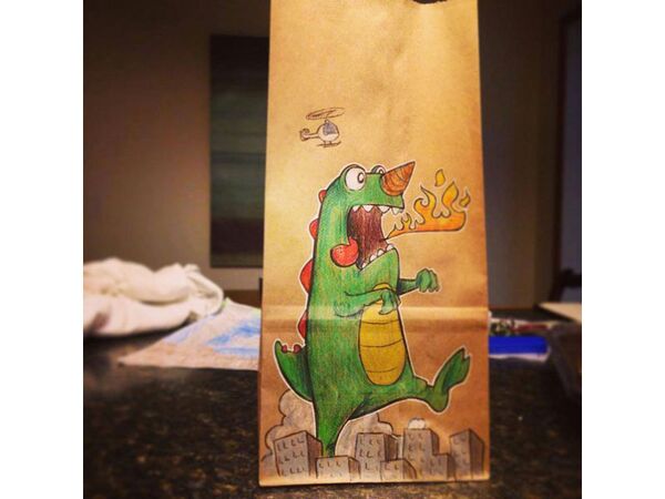 Serbest tasarımcı ve illüstratör Bryan Dunn, okulun ilk günden beri oğlunun öğle yemeği çantasına farklı bir resim çizmiş.