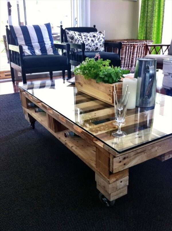 Bir orta sehpa fikri daha! Bu da bir diğer vazgeçilmezimiz paletlerden oluşuyor. Yapacağınız şey oldukça basit! Bir palet edinmek, onu zımparalayıp temizlemek ve verniklemek. Üzerine cam koyarsanız daha işlevsel kullanabilirsiniz.