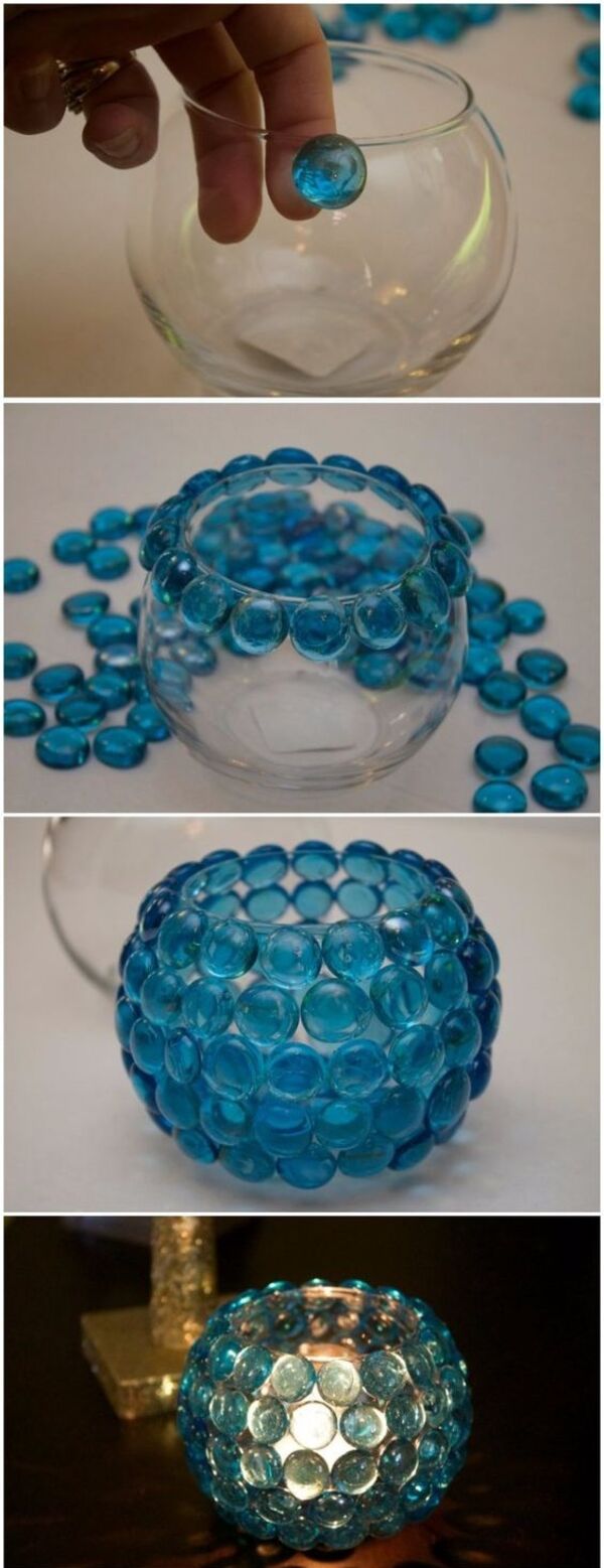 Harika bir mumluk fikri daha... Minik fanuslar ve küçük cam taşlar ile harikalar yaratın!