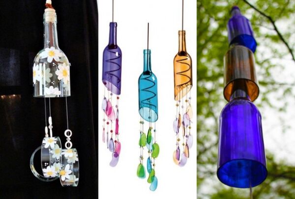 Cam şişelerinizi keserek ya da uçlarından birbirlerine ekleyerek rüzgar çanları oluşturabilirsiniz.