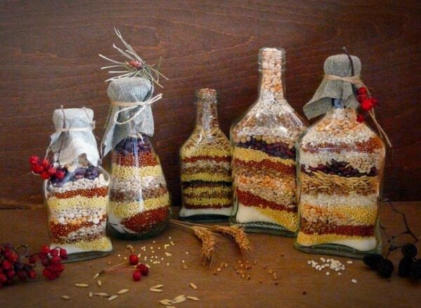 Evinizdeki baklagilleri saklamak için yaratıcı ve dekoratif bir yol arıyorsanız baklagillerinizi fotoğraftaki gibi cam şişelere yerleştirebilirsiniz.