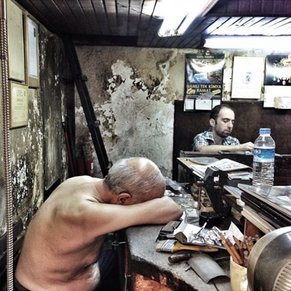 Biri diğerlerinden sıyrılıp, hemen çıkageliyor. Kuyumcular çarşısında, bir atölyede çekilmiş.Yaşlı bir adam, bir kuyumcu ustası, yorgun. Kolunu masaya, başını koluna dayamış tezgahın başında uyukluyor. Belli ki bu tatlı uyku uzun süremeyecek, az sonra işinin başına geri dönmesi gerekecek. Fotoğrafı gördüğüm anı hatırlıyorum. Etrafımda yüksek sesle konuşan insanlara“Hişt!” demek geliyor içimden, “yorgun adamı uyandıracaksınız”. O kareye girip, yaşlı adamın yorgunluğuna bir şekilde çare bulmak istiyorum.