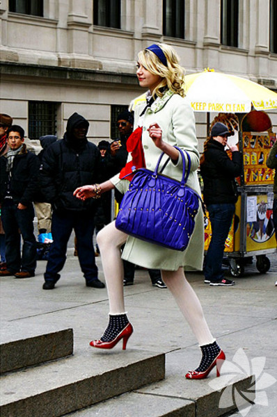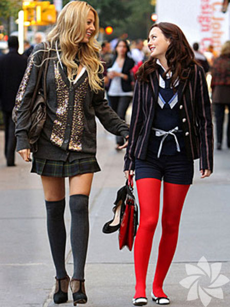 Blair evi hiçbir zaman eteksiz, külotlu çorapsız ya da başında fuları olmadan çıkmıyor. Serena ise daha bohem... Dar deri ceketleri, ekoseli eteği ile her yere ayak uydurabilecek tarzda.