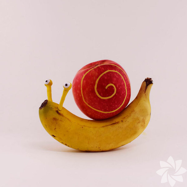 Muz ve elmadan bir salyangoz