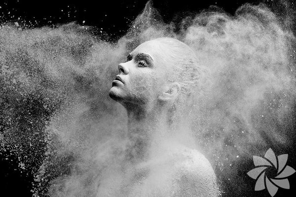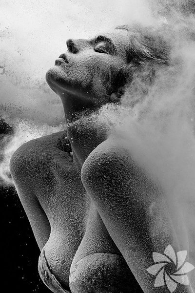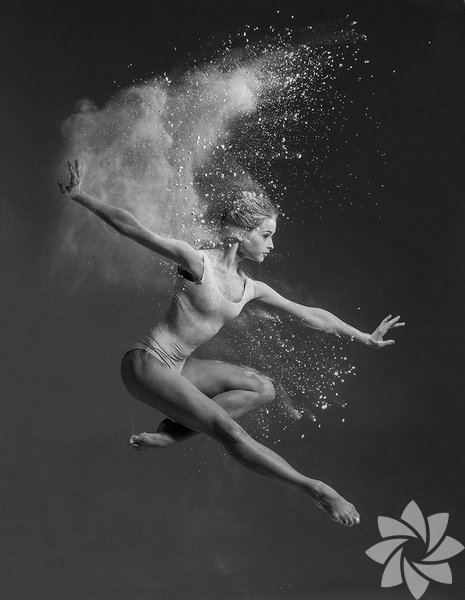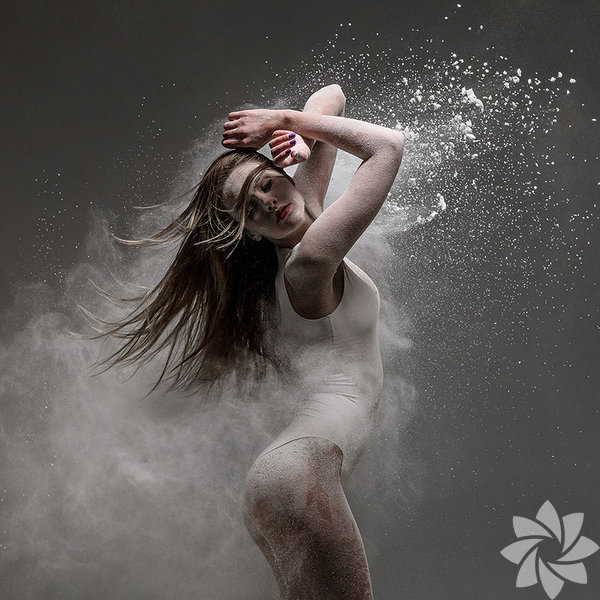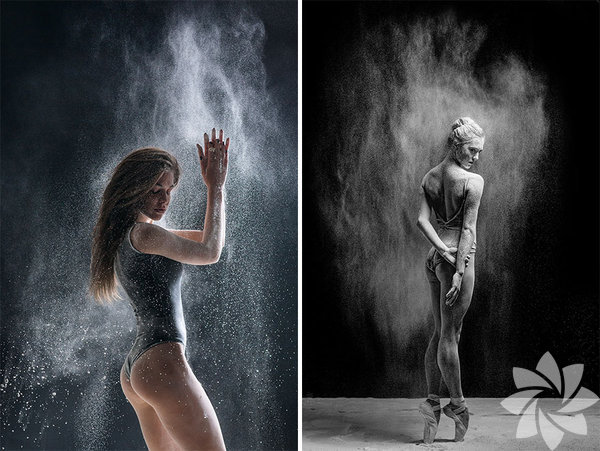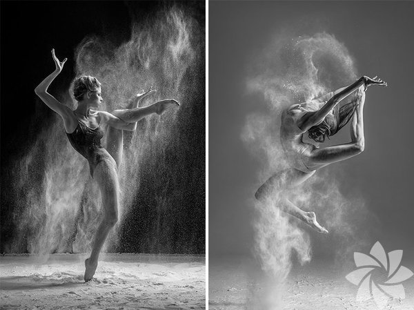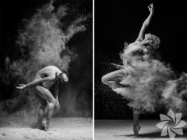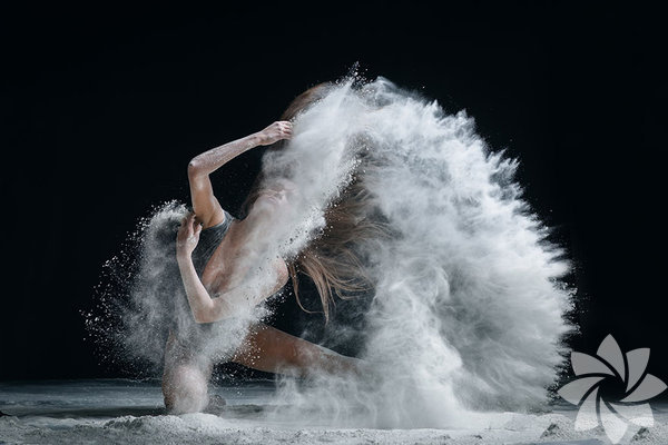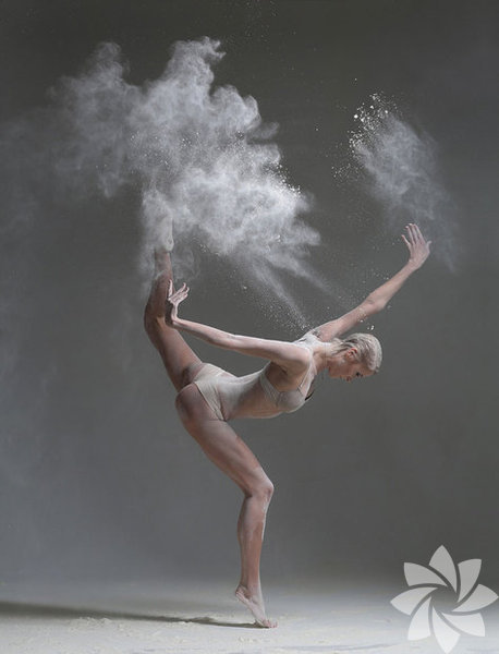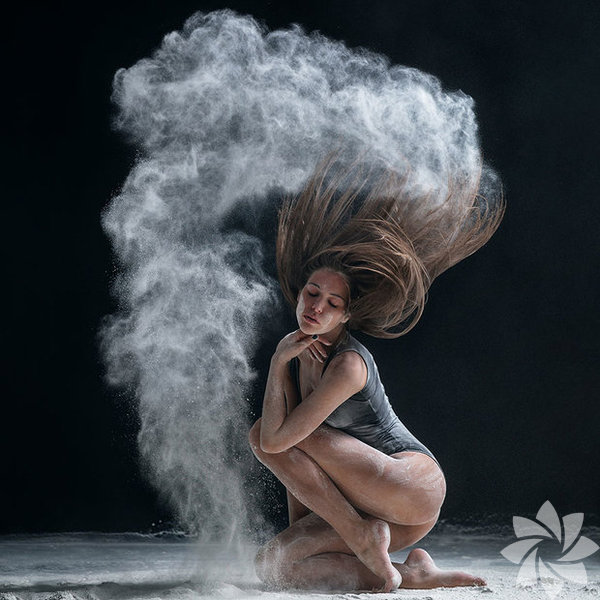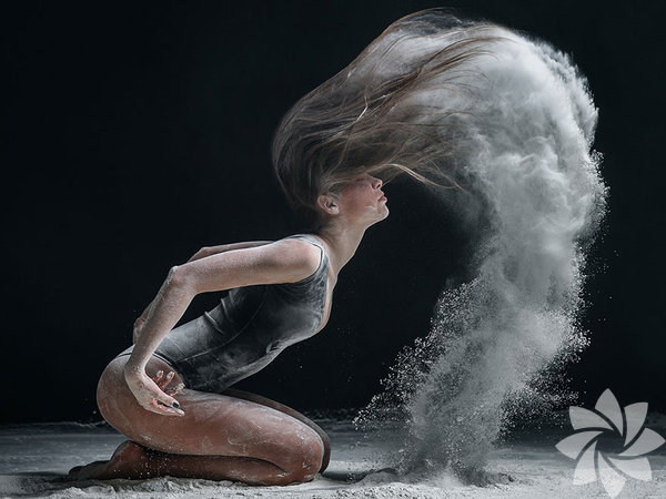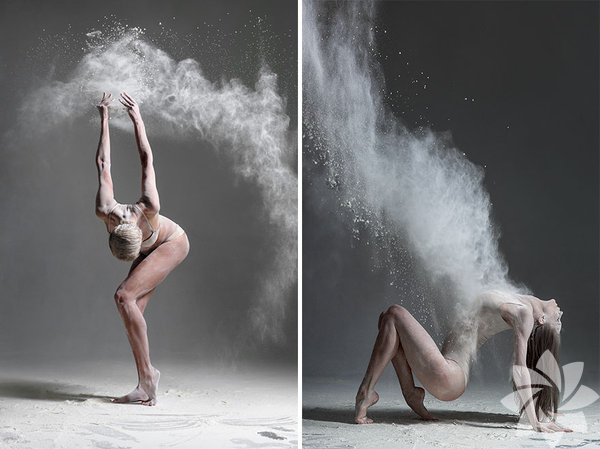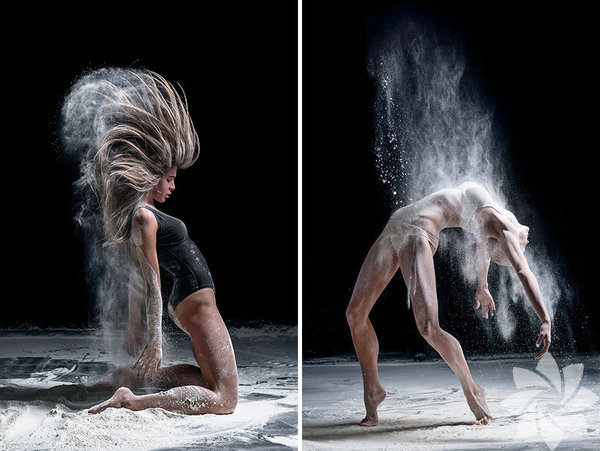 Bu fotoğraf serisinde ise kullandığı un hareket esnasında toz bulutu oluşturuyor ve adeta bir görsel şölen yaratıyor.