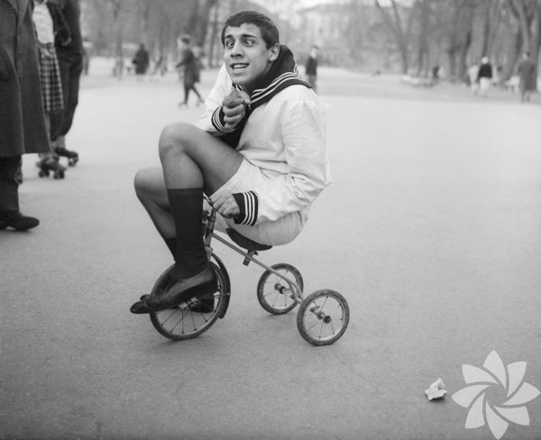 Ünlü İtalyan müzisyen ve aktör Adriano Celentano üç tekerlekli çocuk bisikletiyle -1955-