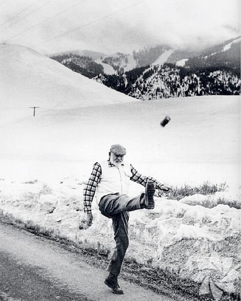 Ernest Hemingway bira şişesine tekme atarken -1959-