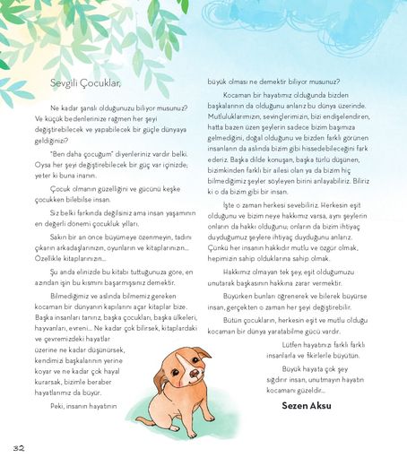 Sevgi, empati, korkuyu kabulleniş, özgüven, cesaret ve insanın özüyle olan ilişkisi gibi unsurların işlendiği kitapta, Sezen Aksu'nun çocuklara yazdığı bir mektup da yer alıyor. Mektupta Aksu, çocuklara şöyle sesleniyor: