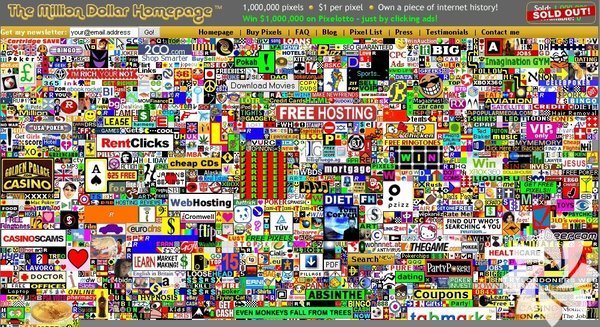 2005 yılında Alex Tew adında bir İngiliz öğrenci eğitimi için para kazanmaya karar verdi. Bir websitesi tasarladı ve bu sitenin her bir pikseli 1 $ ediyordu. Herkes sitenin bir kısmını satın alıp kendi web sitelesinde linki yayınlayabiliyordu. Alex, 6 aydan az bir sürede 1 milyon dolardan fazla kazandı.