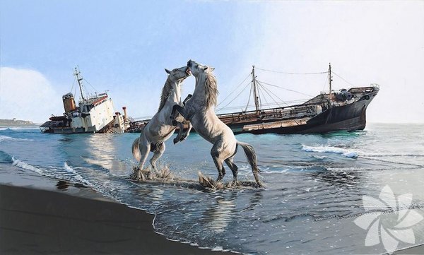 Bu tabloda ise iki atın doğada dövüştüğünü fakat arka planda karaya vurmuş bir gemi olduğunu görüyoruz. Geminin bu hali, insanlığın sonunun ve yok oluşunun bir sembolü diyebiliriz.