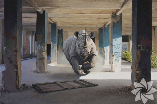Josh Keyes, insanın yok olduğu ama geride müdahaleci izlerini bıraktığı distopik bir dünyayı resmediyor.