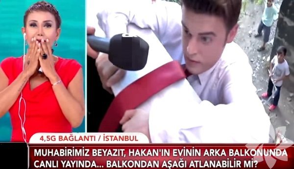 Serap Paköz'ün programında muhabir olayı canlandırmak için balkona çıkıp kendini aşağıya sarkıttı. Muhabirin zor anları canlı yayına yansıdı; stüdyodakiler ise muhabire alkış tutarak destek verdi.