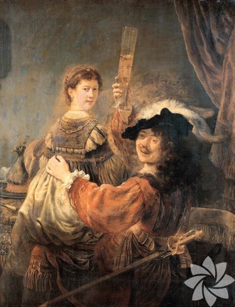 Rembrandt, Saskia Van Uylenburgh ile sanat tüccarı kuzeni aracılığıyla tanıştı. 3 yıl sonra da evlendiler Saskia pek çok çiziminde Rembrandt'ın ilham kaynağı oldu. Âşıklar eğlenmeyi çok seviyordu ancak her şey iyi gitmiyordu. Çocuklarını doğumdan sonra kaybettiler. Oğulları Titus hayatta kaldı ama bu sefer de Saskia kısa sürede tüberkülozdan öldü. Bu Rembrandt ile Saskia'nın yer aldığı tek ikili portre. Ressam kendilerini bir tavernada resmetmiş. Masada görebildiğimiz tek unsur, güzellik ya da sevginin yanı sıra kendini beğenmişlik sembolü olarak da yorumlanabilecek tavus kuşu.