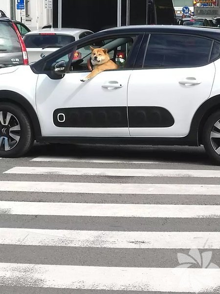 Yaya geçidini işgal eden bir köpek sürücü