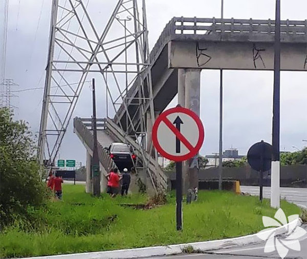 Üst geçiti yanlış kullanan bir sürücü yukarı hızla çıkıyor.