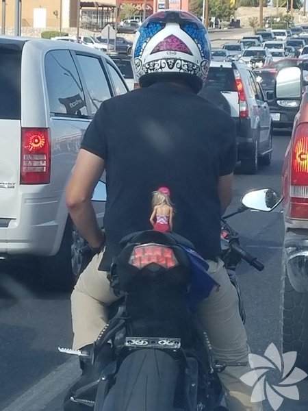 Barbie motorsikletle tura çıkmış gibi.