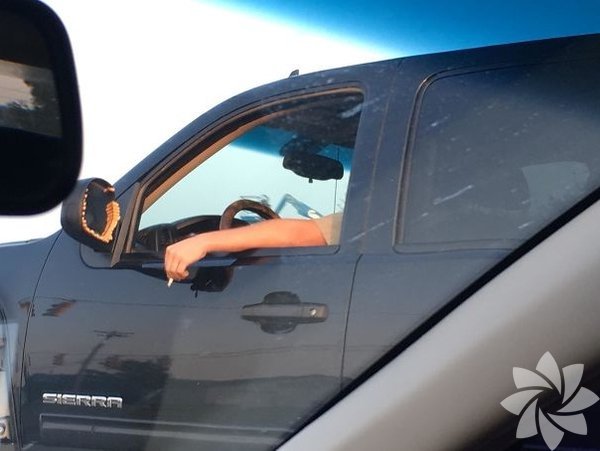Sigara izmaritlerini aynasına koyan bir şoför
