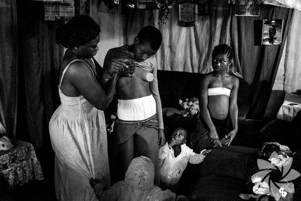 Kamerun'da yaşayan 28 yaşındaki Veronica, gelenek olan meme ütüleme öncesi kızının göğüslerine masaj yapıyor.