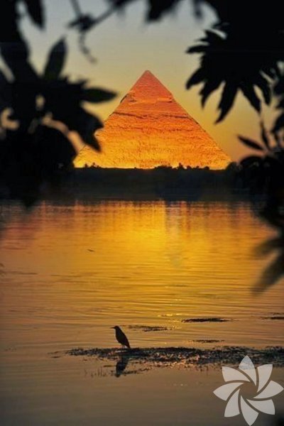 Nil nehri tarafından görünen Keops Piramidi - Mısır