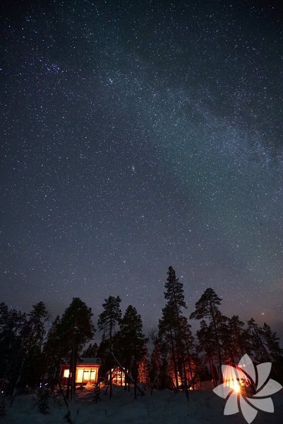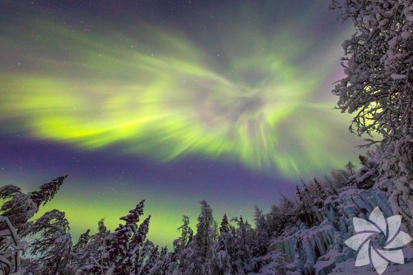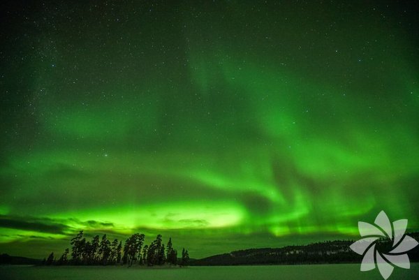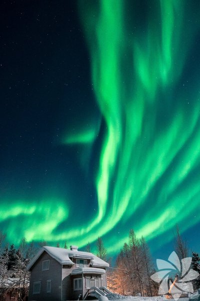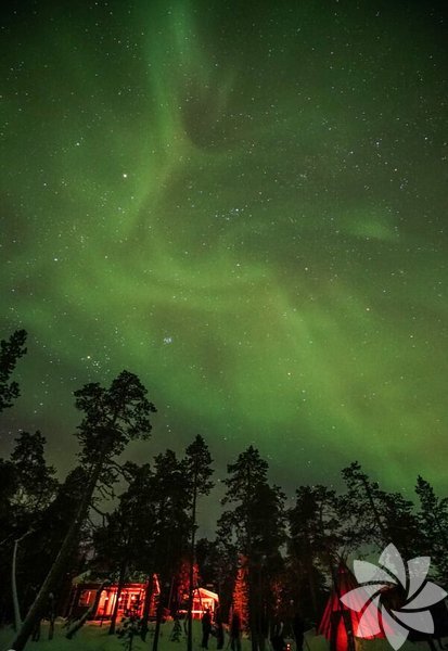 Finlandiya'nın Lapland bölgesinde kış ve kuzey ışıkları