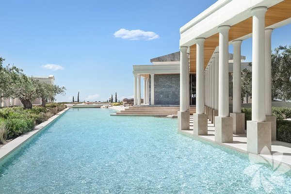 Ünlü Aman zincirine ait Amanzoe berrak suları ile ünlü Porto Heli'de zeytin ağaçlarıyla çevrili bir tepede bulunmaktadır. Yani Amanzoe bir deniz kenarında değil; ama otele ait özel plaj 10 dakika araç mesafesinde ve istenirse ücretsiz servisle ya da dağ bisikletiyle ulaşılabiliyor. Kumsalı tamamen kum değil, yer yer çakıl taşlı; ama suyu muhteşem bir mavilikte. Ayrıca havuz sevenler için 2 adet kocaman havuz da unutulmamış.